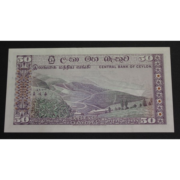 Billete de Sri Lanka año 1977 Central bank Of Ceylon de valor 50 rupees Banknote del Armas Ceylon. Clasificacion pick#81a conservacion (Sin Circular) Sin doblez central, Marca Clip en margen Superior.