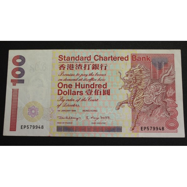 Billete de Hong Kong de valor 100 Dollars año 1999 Banknote Standard Chartered Bank. clasificacion PICK#297c. conservacion MBC