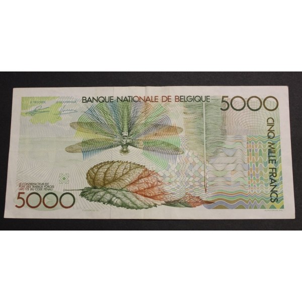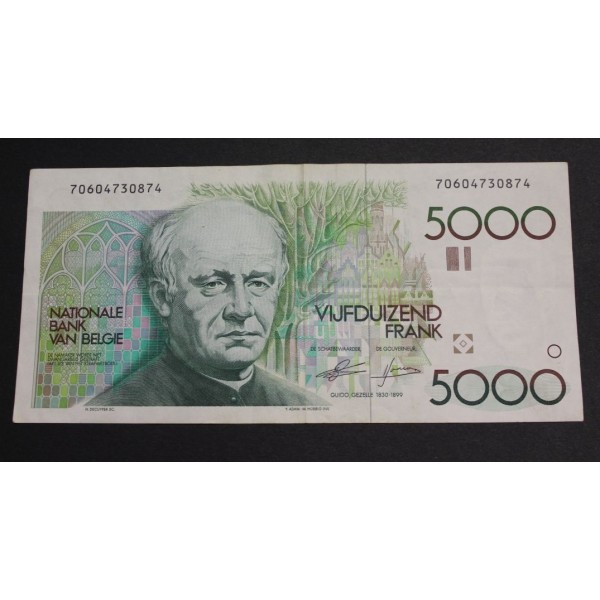 Billete de Belgica Banque Nationale Belgique No fecha ( 1982 - 1992 ) de valor 5000 Francs. Banknote Guido Gezelle 1830-1899. Clasificacion Pick# 145(4) calidad ( MBC )