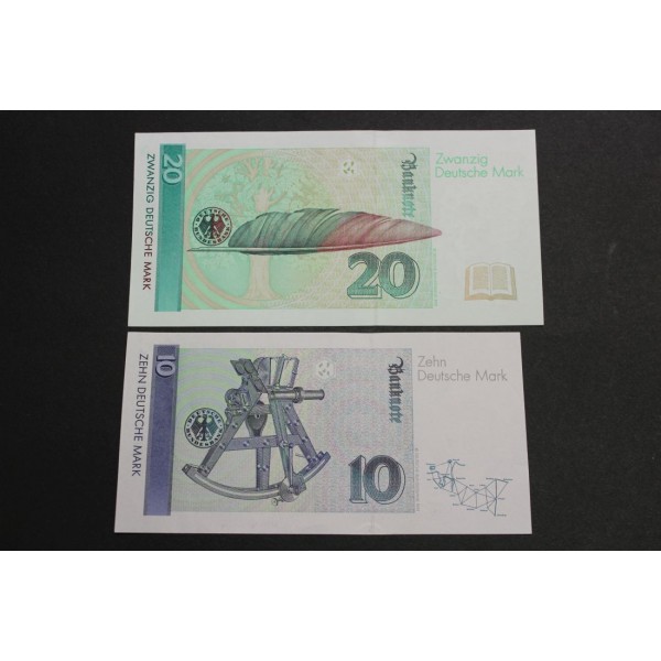 Lote de 2 Billetes de Alemania, 2 Banknote de Germany, de valores 10 mark - 20 Mark años 1993 - clasificacion Pick#38c - pick#39b conservacion EBC.