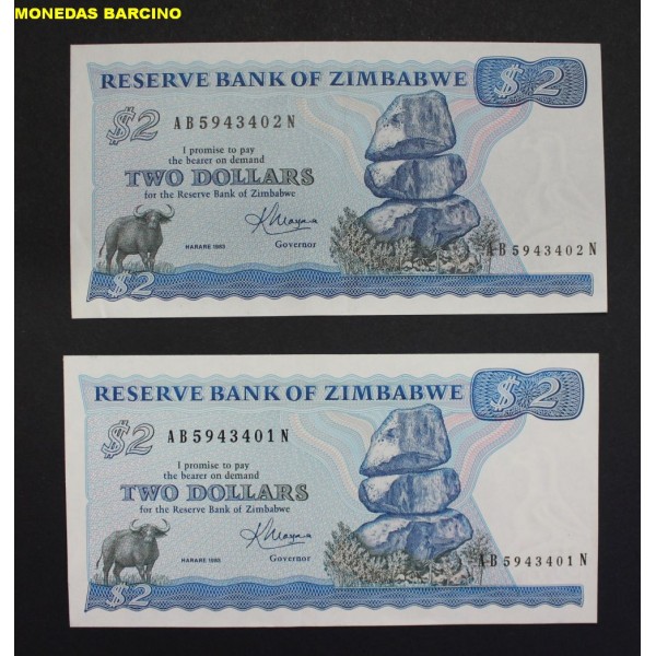 1983- ZIMBABWE - 2 DOLLARS - 2 BILLETES