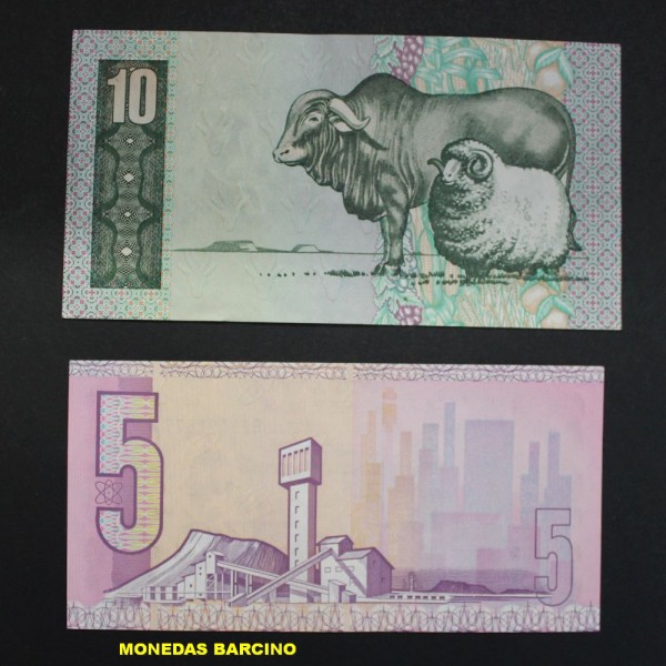 Lote de 2 Billetes de Sud Africa. South African Reserve Bank sin fecha (1990-1994) de valores 5 rand y 10 Rand. banknote Vermuyden clasifcicacion pick#119c.- 120e. conservacion EBC