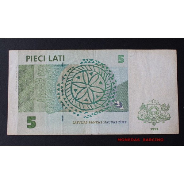 1992- LETONIA - 5 PIECI LATI - LATVIJAS - ROBLE