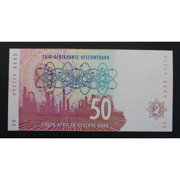 Billete de SudAfrica. South African Reserve Bank sin fecha ( 1992 ) de valor 50 rand Banknote del Leon de Africa. clasificacion Pick#125b. conservacion Sin Circular - sin doblez central.