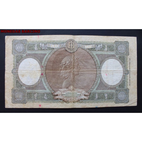Billete del Regno de Italia fecha 13 /08/ de 1956 de valor 5000 lire. Billete Regina del Mare Minichela e Boggione. clasificacion PICK#85c. conservacion (MBC).