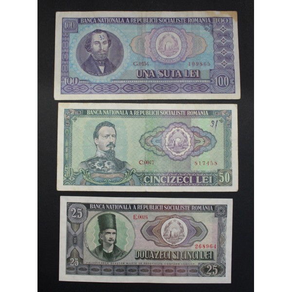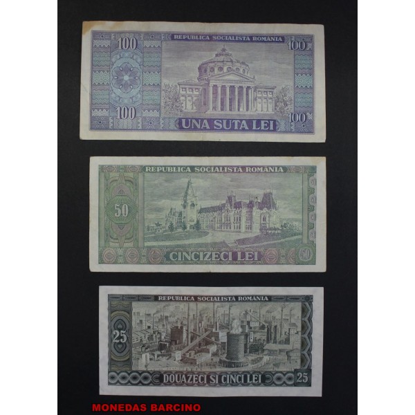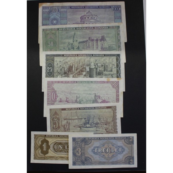 Lote de 7 Billetes de Rumania Romania años 1966 de valores 1- 3- 5- 10- 25- 50- 100 Lei. 7 Banknotes Coleccion Completa. Banca Nationala a Republich Socialiste Romania. Clasificacion Pick #91 al 97. Calidad MBC/MBC+.