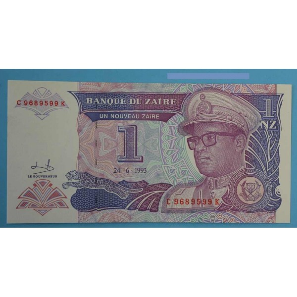 Billete de Zaire del Banque du Zaire fecha 24- 6 - de 1993 de valor 1 Nuevos Zaire Billete clasificacion PICK#52 conservacion sin circular.