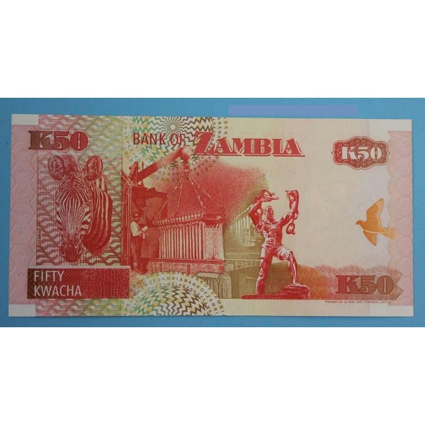 Billete de Zambia del Bank of Zambia fecha (1992) de valor 50 Kwacha Billete clasificacion PICK#37 conservacion sin circular.