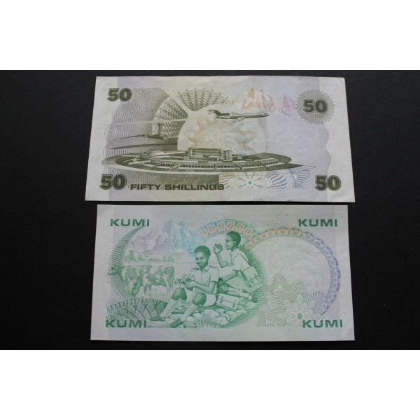 1987- KENYA-10 -50 SHILLINGS -AFRICA- 2 BILLETES
