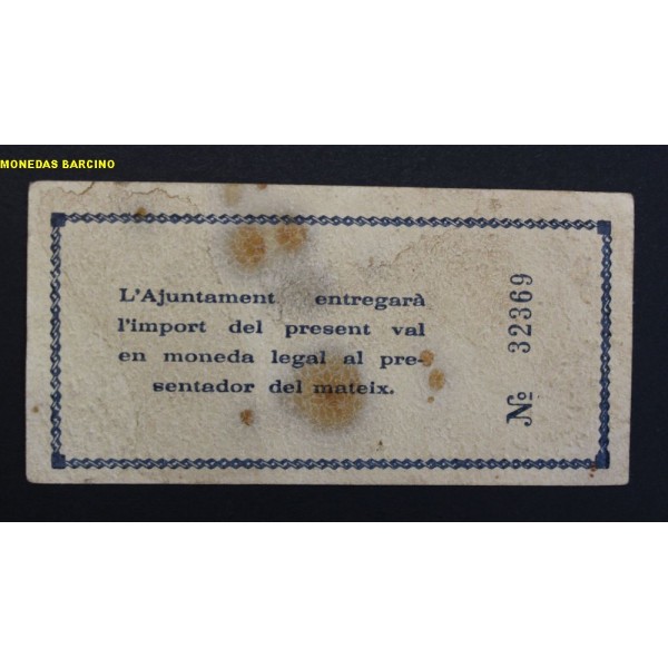 Billete de Girona de Ajuntament de Foixa Gerona de valor 2 pessetes Dues Ptes. fecha emision maig de 1937 . Billete Guerra civil Española. Papel Moneda local. conservacion ( EBC) Sin doblez. manchas.