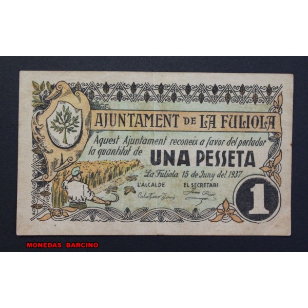 1937- LA FULIOLA - LLEIDA - 1 PESETA- BILLETE