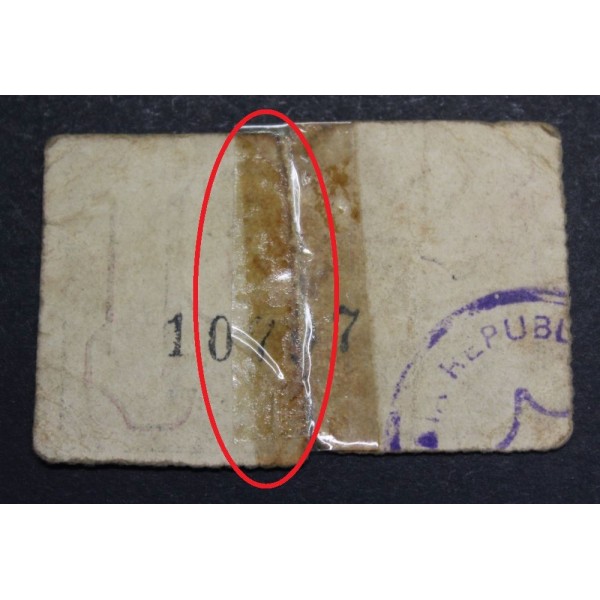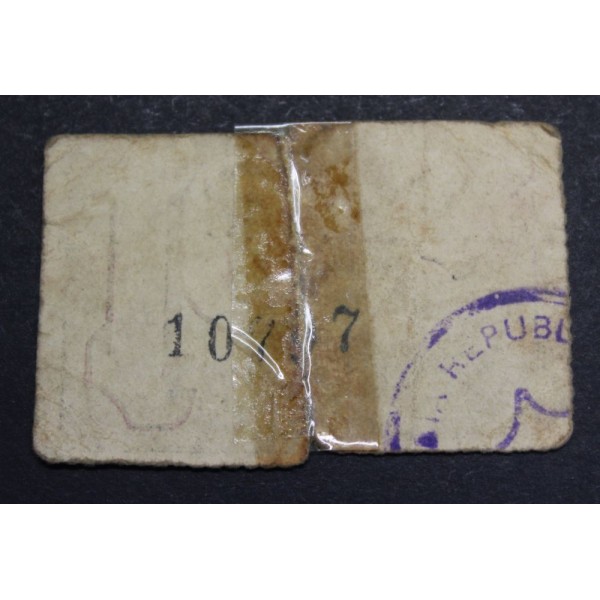 Billete de la Provincia de Lleida Ajuntament de Bellpuig fecha emision ( 1937) Lerida de valor 10 Centims. Sello en Tinta. Billete Guerra civil Española. Papel Moneda local Catalan. conservacion (BC ) billete Roto y Pegado Antiguo.