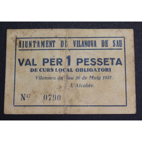 1937- VILANOVA DE SAU - 1 PESETA - BARCELONA