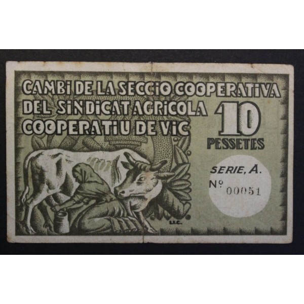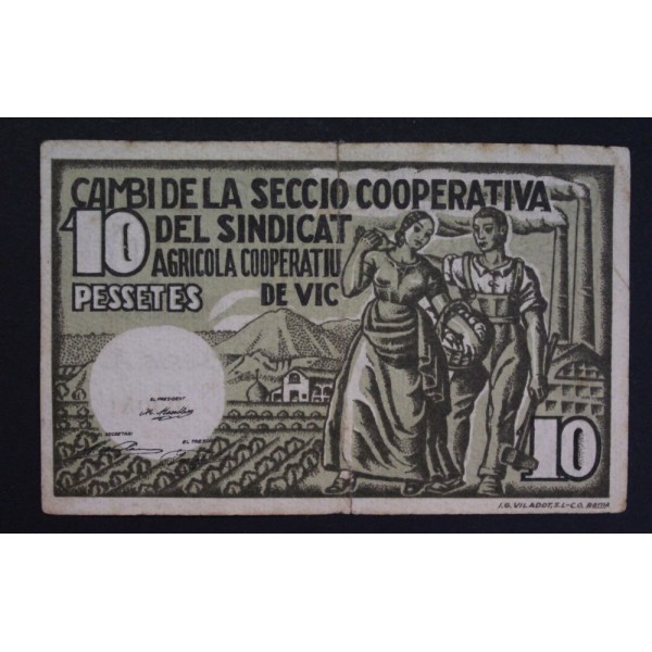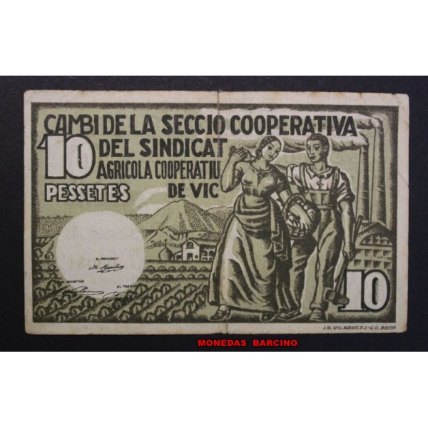 1937- VIC - COOPERATIVA AGRICOLA - 10 PESETAS