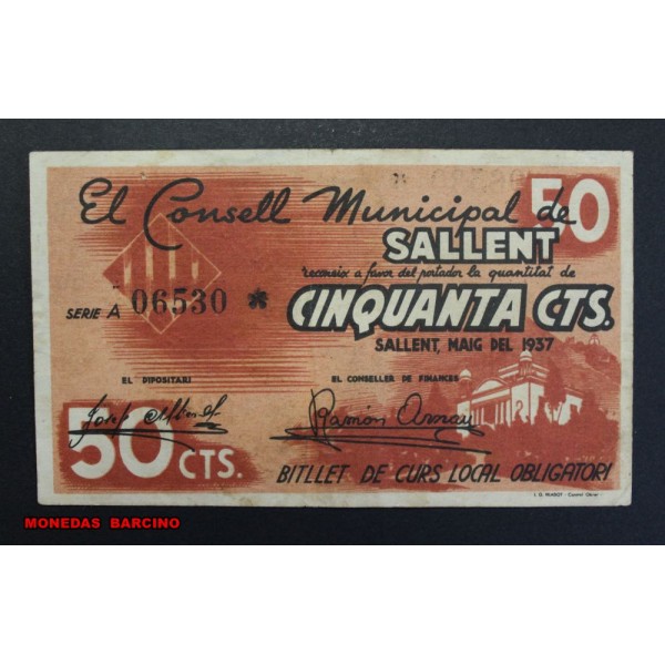1937- SALLENT -50 CENTIMS - BARCELONA - BILLETE