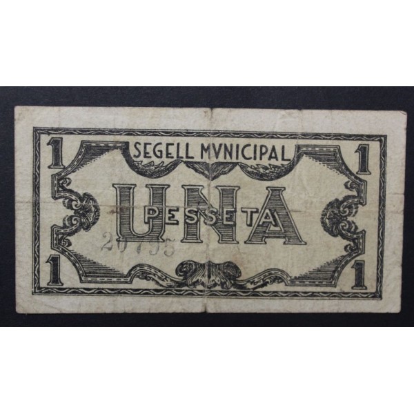 Billete de la Provincia de Lleida Consell Municipal de Tremp fecha emision del (1937) Lerida de valor 1 pesseta. Billete Guerra civil Española. Papel Moneda local Catalan. conservacion (MBC-)