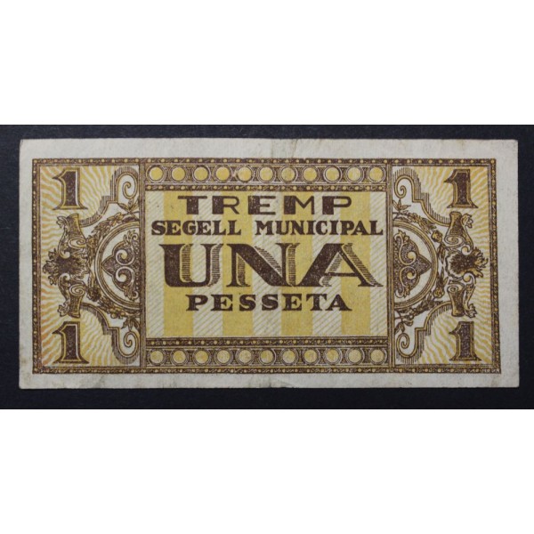 Billete de la Provincia de Lleida Consell Municipal de Tremp fecha emision del (1937) Lerida de valor 1 pesseta. Billete Guerra civil Española. Papel Moneda local Catalan. conservacion (MBC)