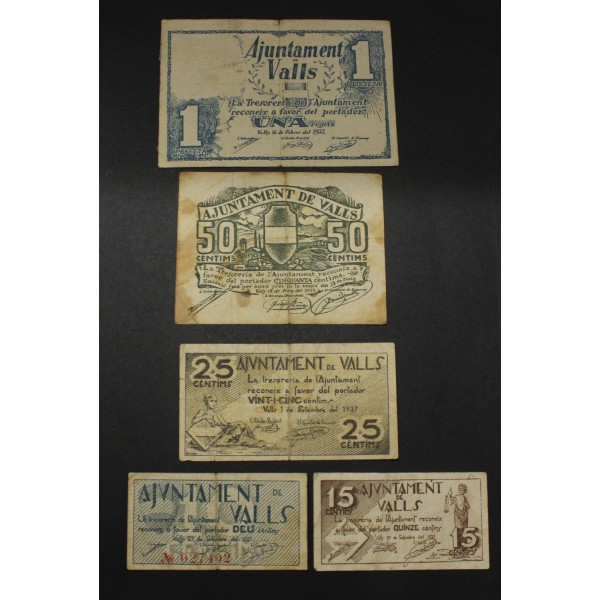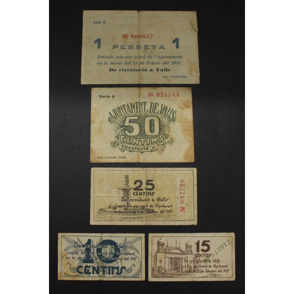 1937- VALLS -5 BILLETES -TARRAGONA- CENTIMS -PESETA