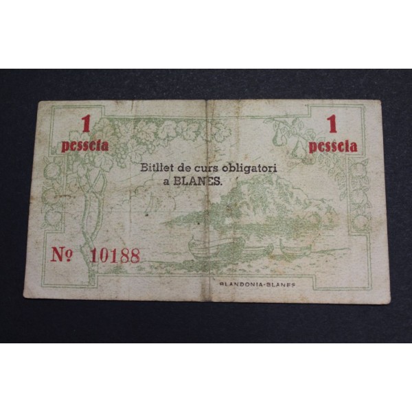 1937- BLANES - 1 PESETA - GIRONA - BILLETE