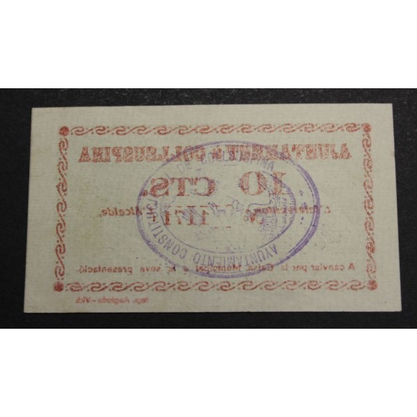 Billete de la Provincia de Barcelona del Ajuntament de Collsuspina. de valor 10 centims fecha emision del 1937. Sello en tinta. Billete de la Guerra civil Española. Papel Moneda local Catalan. conservacion (Sin Circular-) Sin doblez central.