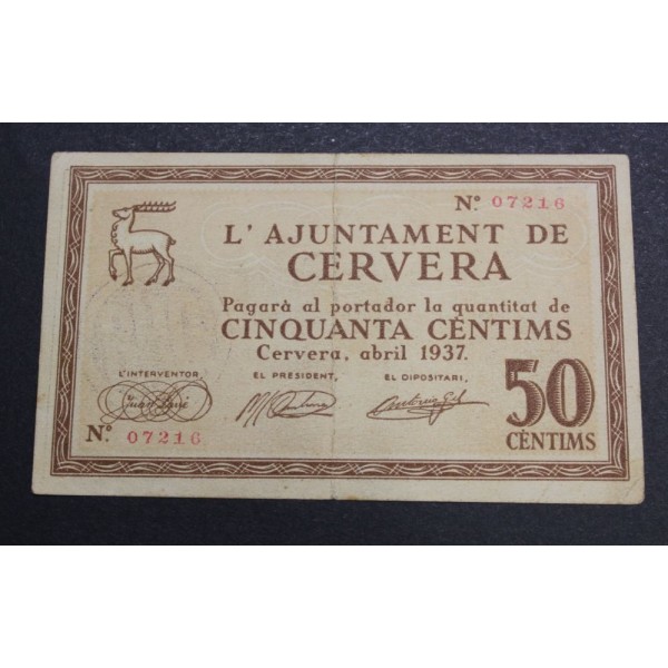 1937- CERVERA - 50 CENTIMOS - LLEIDA -