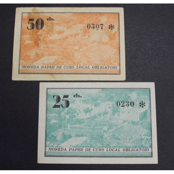 1937- CERVIA DE TER - 2 BILLETES - GIRONA - 25-50 CENTIMOS