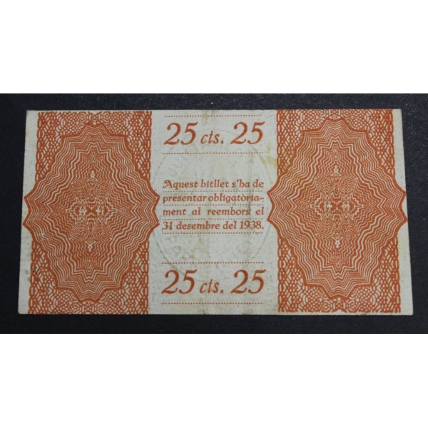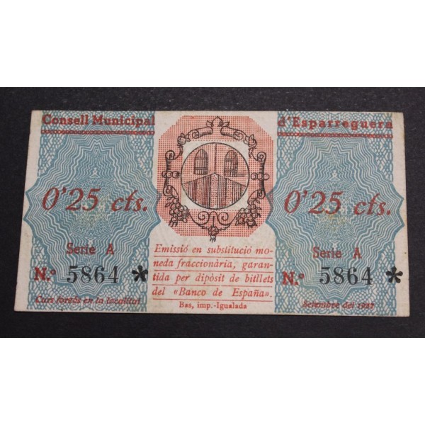 1937- ESPARRAGUERA - 25 CENTIMOS - BARCELONA