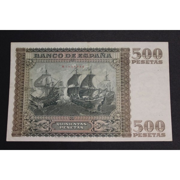 Billete del Banco de España , fecha 9 de enero de 1940 Madrid de valor 500 pesetas. Serie A. Billete de Juan de Austria reverso barco. Banknote estado Español. clasificacion PICK#119a. conservacion MBC+