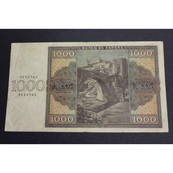 Billete del Banco de España fecha emision 21 - Noviembre - 1936 Burgos de valor 1000 pesetas serie B. Billete de Burgos reverso Alcazar y Puente de Toledo. Banknote clasificacion PICK#103a. - calidad MBC+