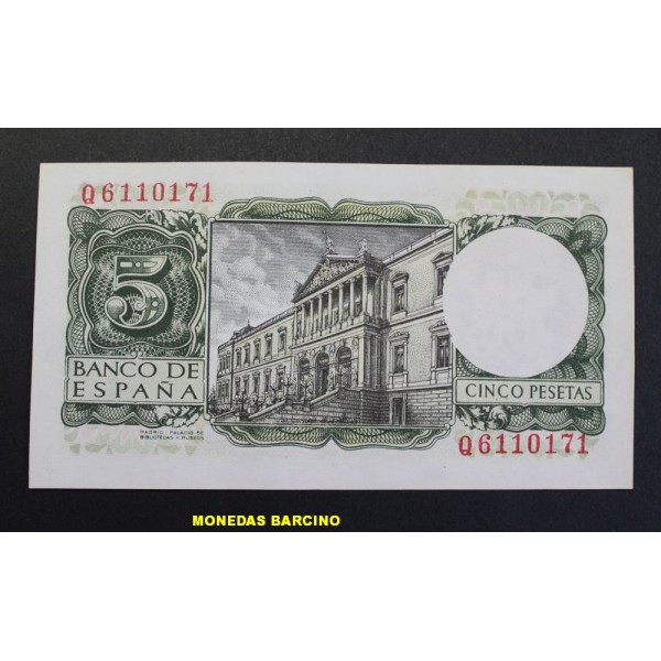 Billete del Banco de España , Estado español fecha 22 de julio de 1954 Madrid. de valor 5 pesetas serie Q. Billete del rey Alfonso X. Clasificacion Pick#146a. conservacion EBC Sin Doblez Central. Ver imagenes.
