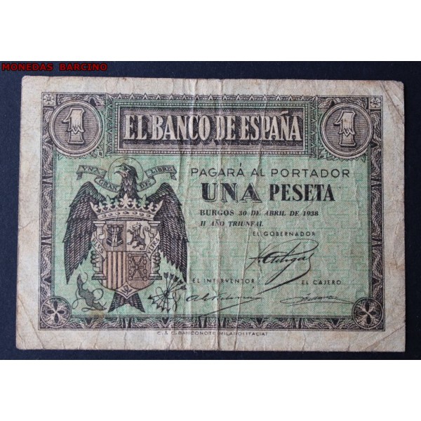 1938- 30 ABRIL -SERIE G- 1 PESETA- BURGOS-BILLETE