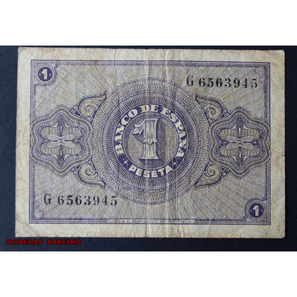 Billete del Banco de España fecha 30 de abril de Burgos 1938 de valor 1 peseta Serie G Billete del II Año Triunfal Burgos epoca Estado Español Francisco Franco. clasificacion PICK#108a conservacion BC