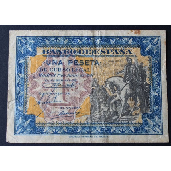 Billete del Banco de España fecha 1 de Junio de 1940 Madrid Estado Español de valor 1 Pesetas. Serie B Billete de Hernan Cortes Banknote clasificacion PICK#121a conservacion ( MBC ) manchita
