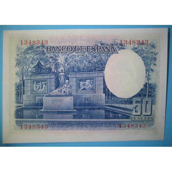 Billete del Banco de España fecha emison 2 de Julio de 1935 Madrid de valor 50 pesetas. Sin Serie . Estado Español. Clasificacion PICK#88. Billete de Santiago Ramon y Cajal. Conservacion EBC.