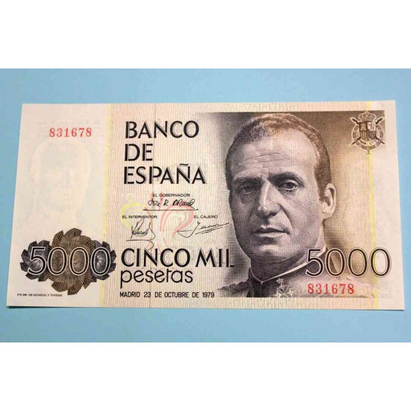 Billete de España madrid año 1979 Banco de España de valor 5000 Pesetas billete del rey Juan Carlos I .Billete sin serie Nº831678 Madrid conservacion Sin Circular.