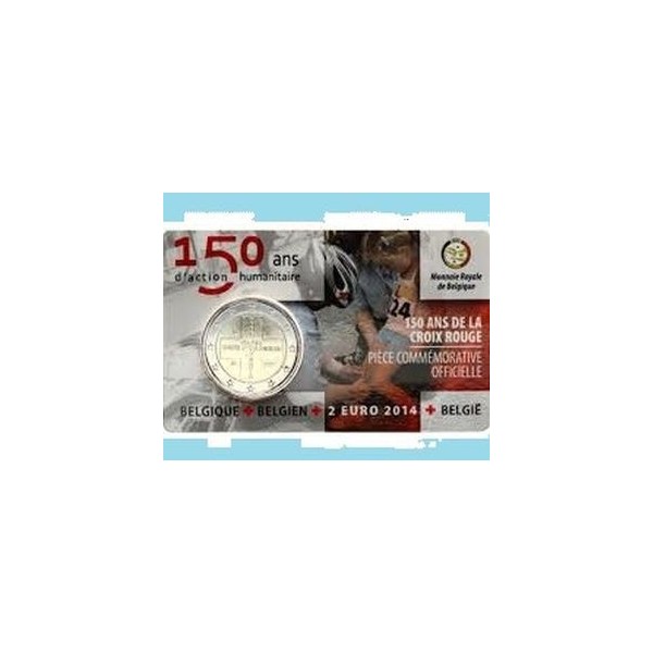uros de Europa monedas de Belgica año 2014 de valor facial 2 euros conmemorativos del Aniversario de la Cruz Roja 150 Jaar rode Kruis . la moneda sin circular en coincard blister original