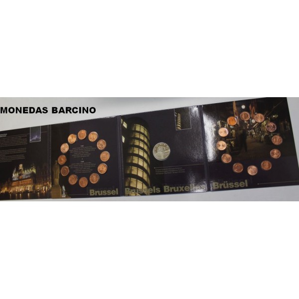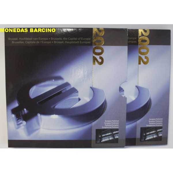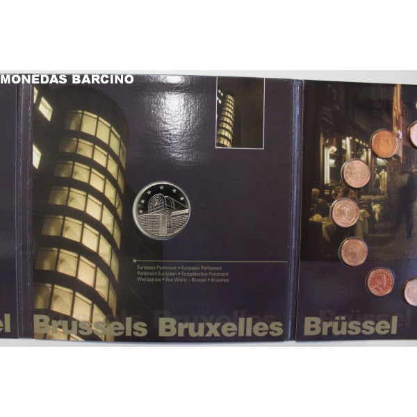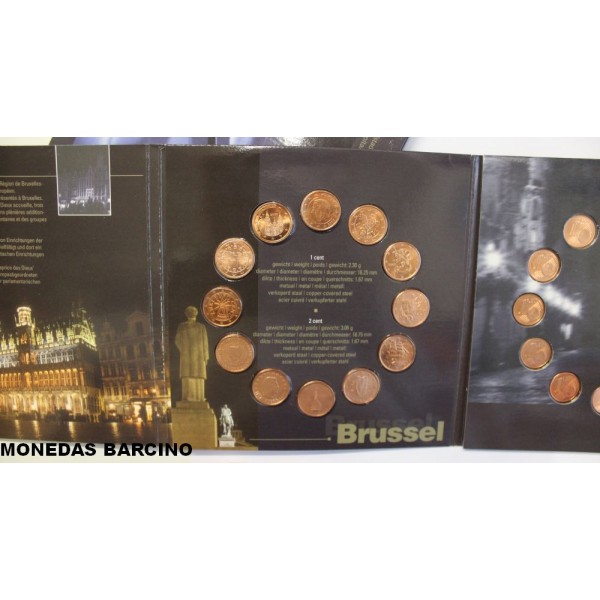 Coleccion de Monedas de Belgica . año 2002 12 Monedas de 2 centimos de euro + 12 Monedas de 1 Centimos de Euro mas Merdalla conmemorativa del parlamento de Bruselas Capital de Europa. Monedas del banco de Belgica Monedas sin circular prsentadas en Blister Oficial 2002