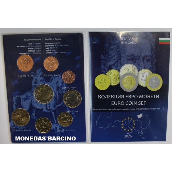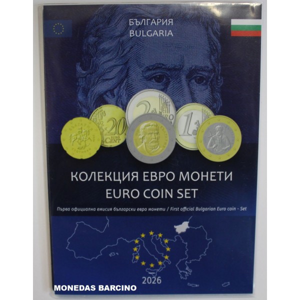 Monedas de Bulgaria año 2026 de valor en EUROS coleccion de 8 monedas desde 1 Centimo -2 Centimos - 5 Centimos- 10 centimos- 20 Centimos- 50 Centimos - 1 Euro - 2 Euros . Monedas nuevas sin circular, Monedas de Euros Presentadas en blister original de Bulgaria . Euros de Europa