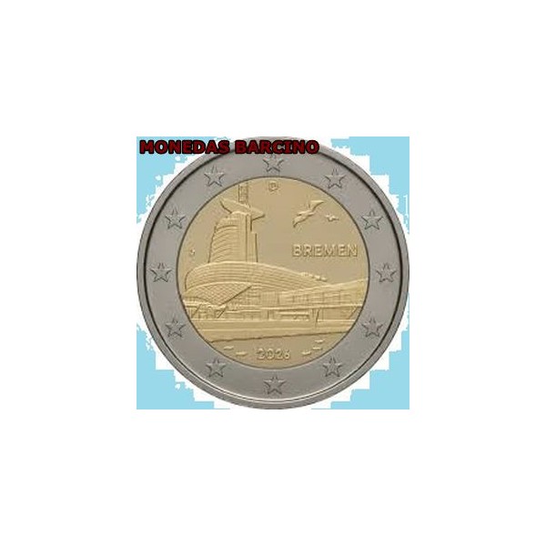 Moneda de Alemania euros Deutschland año 2026 de valor 2 euros conmemorativos de Bremen casa del clima Bremerhaven- 1 Moneda nuevas sin circular de cartucho.