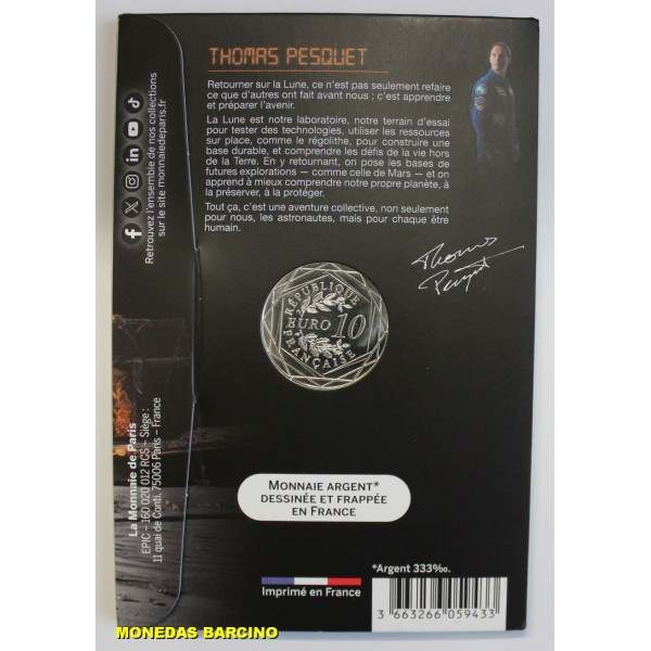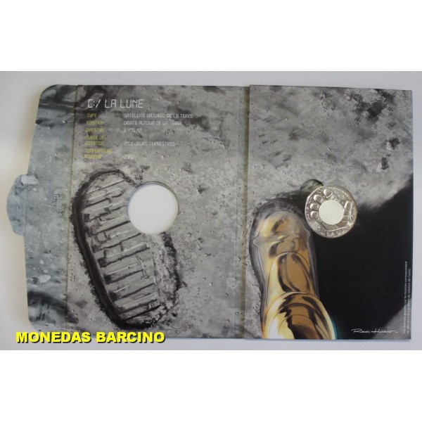 Monedas de Francia de valor facial 10 euros de plata 333 mls. Moneda conmemorativa de la serie Odisea Espacial. dedicada a la Luna. Monnaie de Paris . Moneda con blister original sin circular