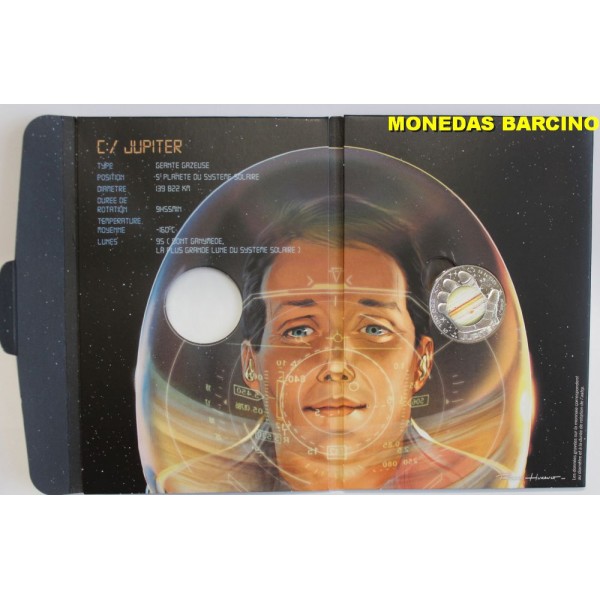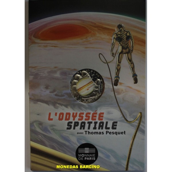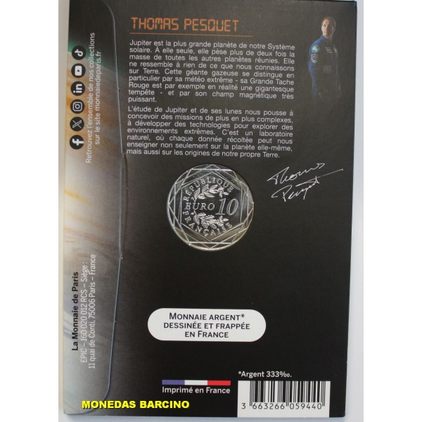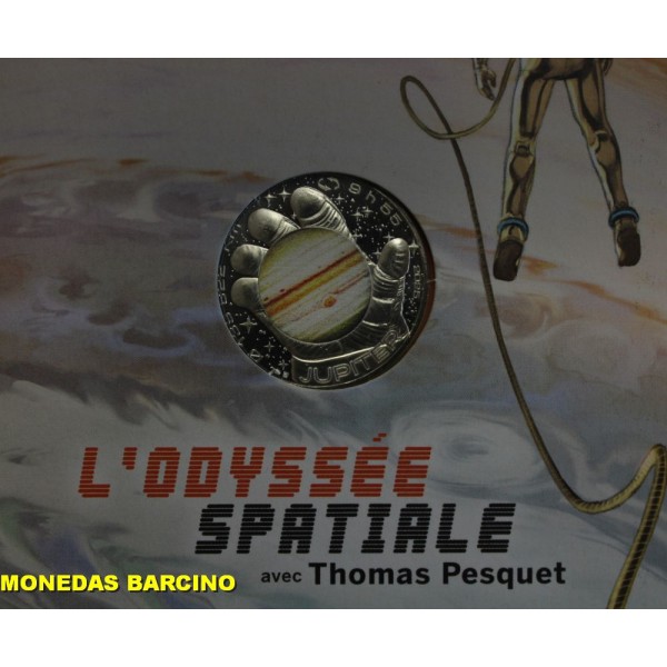 Monedas de Francia de valor facial 10 euros de plata 333 mls. Moneda conmemorativa de la serie Odisea Espacial. dedicada al plneta Jupiter. Thomas Pesquet. Monnaie de Paris . Moneda con blister original sin circular