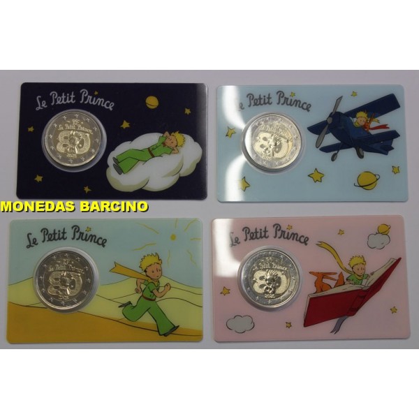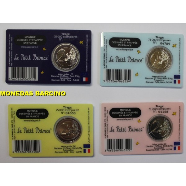 Coleccion de 4 Monedas de Francia año 2026 de valor facial 2 euros conmemorativos dedicados al 80 aniversario de la publicacion de El Principito Monnaie de Paris . 4 monedas sin circular en 4 Coincards Oficial