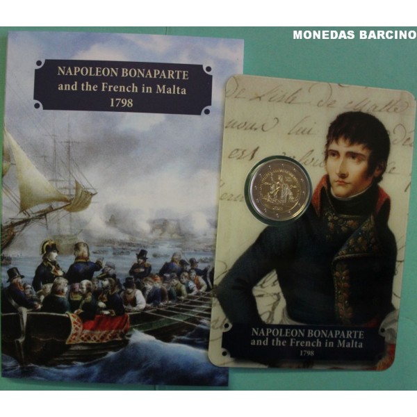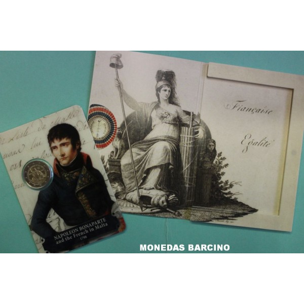 Moneda de MALTA de valor facial 2 Euros conmemorativos del 225 aniversario de la llegada de los Franceses a Malta. Napoleon Bonaparte. año 2023. la moneda se entrega en blister oficial