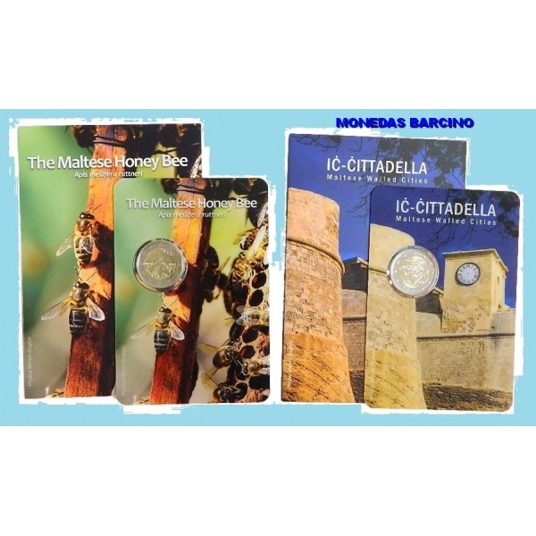 2 Monedas de MALTA de valor facial 2 Euros conmemorativos de Cittadella y Maltesse Honey año 2024. las monedas se entrega en blister oficial