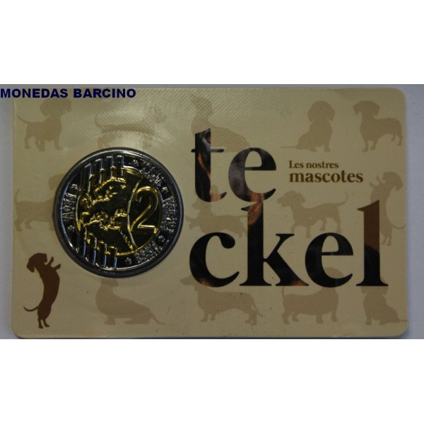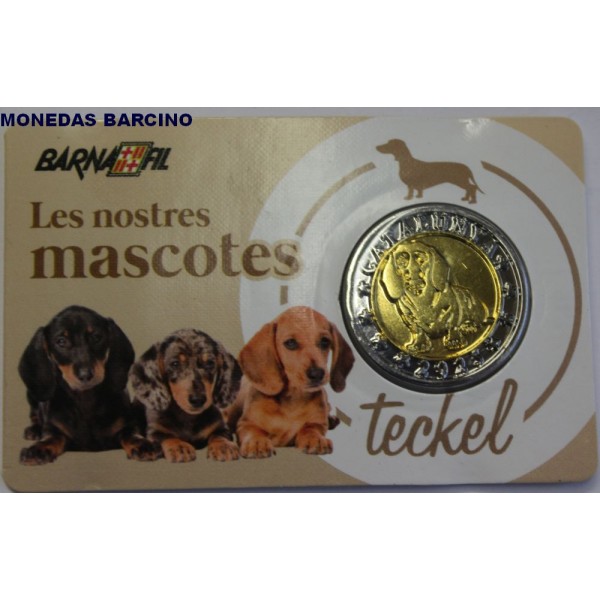 Prueba Numismarica de Catalunya 2025 Cataluña año 2025 de valor 2 Euros conmemorativos de Les Nostres Mascotes Teckel. moneda sin circular en coincard. Prova Numismatica
