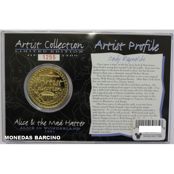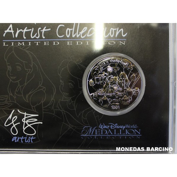 Medalla conmemorativa de Walt Disney World. edicion limitada de Alicia y el Sombrerero Loco 1951. Artistico coleccion Medalla numerada. calidad sin circular. presentada con blister original. diametro 38mm