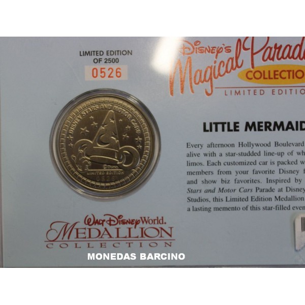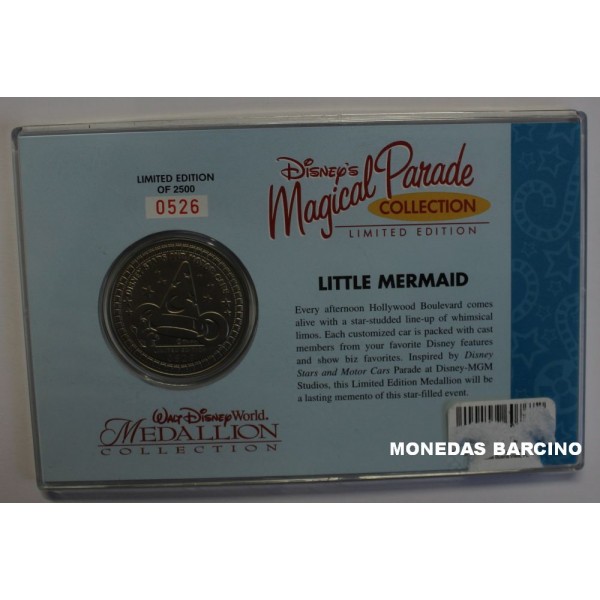 Medalla conmemorativa de Walt Disney World. edicion limitada de La Sirenita. Little Mermaid. Medalla Numerada bicolor con la luz. calidad sin circular. presentada con blister numerado original. diametro 39mm.