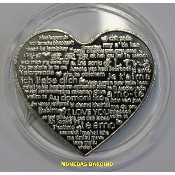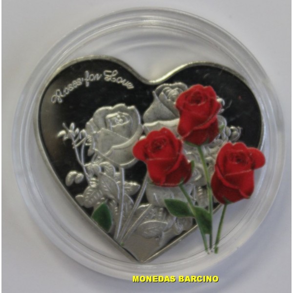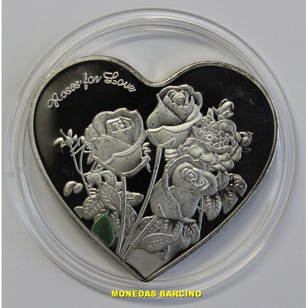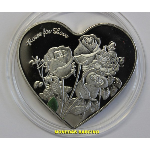 Medalla Conmemorativa en forma de Corazon. Rosas Love.sin fecha ni valor Medalla plateada Presentada en Capsula con flores de color. diametro 39mm. COINS MUNCH