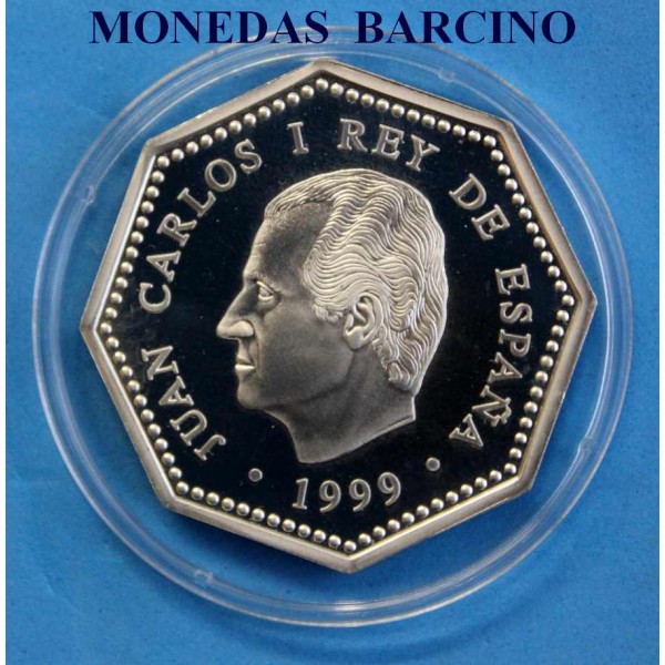 Moneda de España año 1999 de valor facial  1500 pesetas de plata Moneda conmemorativa del  Milenio  . Rey Juan Carlos I de España -  La moneda con capsula Estuche y certificado original y Oficial F.N.M.T. Fabrica Nacional Moneda y Timbre. . Composicion Ley Plata 925 milesimas, peso 20gr calidad Proof  .
