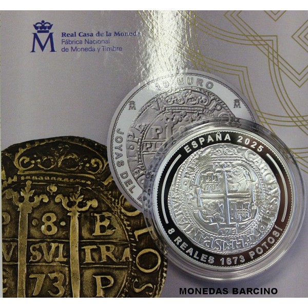Moneda de España año 2025 rey Felipe VI de valor 10 euros de plata 925 mls. 8 reales silver. Moneda Conmemorativa de la serie II. Joyas del Museo Casa de la Moneda 1673 Potosi. emision 2025. Rey Felipe VI. La Moneda calidad Proof con estuche capsula y certificado Oficial.- Real casa de la Moneda F.N.M.T fabrica Nacional Moneda y Timbre
